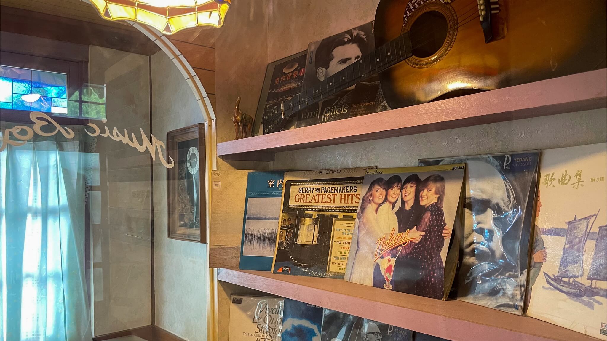 Visitors to Yaksok Dabang receive a free cup of dabang coffee, a traditional sweet coffee with creamer and sugar. Visitors are welcome to try on vintage school uniforms at the photo studio and have a black-and-white portrait taken on-site to take home as a keepsake.